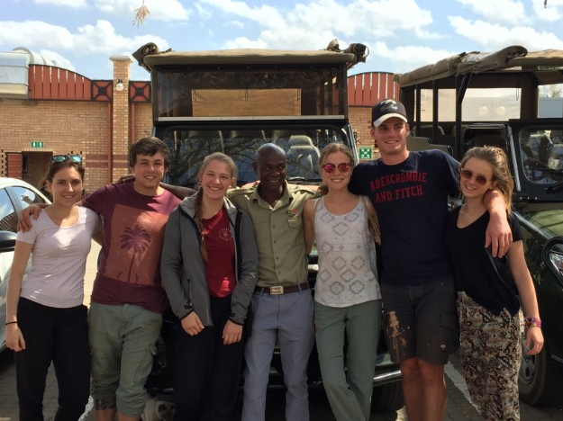 Heute ist der letzte Tag im Krüger und zum Abschied durften wir nochmal so richtig früh aufstehen. Statt um 5 Uhr hat der Tag heute schon um 4:30 Uhr begonnen und anstatt einer Jeeptour sollte heue ein bushwalk auf uns warten. Das mussten wir zusätzlich buchen und dabei hat man eben die Möglichkeit den Krügerpark mal von einer ganz anderen Seite kennenzulernen. Mit einem Jeep sind wir erstmal zu einem Ausgangspunkt gefahren, von wo aus unsere Tour beginnen sollte. Von dort aus sind wir dann los: in einer Reihe und mit zwei bewaffneten Guides. Wir mussten ruhig sein, um die Tiere nicht zu erschrecken. Man erklärte uns, dass sie die Tiere meist schon vor uns sähen, aber die Tiere uns noch vor ihnen. Es wäre wie ein Parfüm, dass wir tragen, somit die Tiere auf uns aufmerksam machen und diese dann einen großen Bogen um uns machen können, weshalb die Ranger selbst am morgen nur mit Wasser duschen. Genau das hat man auch gemerkt, denn außer tote Schädel, Knochen oder Scheiße war nicht viel zu sehen. Man eklärte uns die Fußspuren und die Geräuschkulisse war natürlich eine ganz andere als im Jeep. Einer der Ranger hat sich immer ein Stückchen von der Gruppe enfernt, um alles im Blick zu behalten. Doch viel passiert ist zunächst nicht, bis auf einmal von einem der Ranger ein Ruf kam. Unser Guide wirbelte in diesem Moment herum. Man hörte wie die Waffe geladen wurde und sie sich geduckt hat, während sie langsam nach vorne gepirscht ist. Wir zuckten zusammen. Manche hielten sich die Ohren zu. Doch nach einigen Sekunden war der Spuk vorbei. Man erzählte uns ein Löwe hätte in 20 m Entfernung von uns geschlafen. Wir haben ihn zwar nicht zu Gesicht bekommen, trotzdem hat es nicht nur für eine Schrecksekunde bei uns gerreicht. Die resltiche Tour dagegen war eher unspektakulär: ein paar Zebras, Impalas und in einiger Entfernung Elefanten. Am Ende haben wir noch auf einer Art Felsen gefrühstückt. Danach ging es zurück zum Camp, um alles für die Rückreise fertigzumachen: Zelte abbauen, die Kochstelle, sowie die Stühle zusammenpacken. Danach waren wir dann superdreckig. Meine gesamten Klamotten, die ich dabei hatte sind nun bedeckt mit einer dünnen roten Staubschicht. Aber die Tage haben sich gelohnt, wobei wir trotzdem froh waren wieder in die Lodge mit richtigen Betten, Schränken und einer Küche zurückzukehren. Mit den Jeeps wurden wir noch bis zu den Grenzen des Krügerparks gebracht. Hier hieß es dann Abschied nehmen von unseren Guides Happi und Ernest und Umsteigen in den Minibus. Die Rückfahrt war dann zwar wieder relativ lang, aber man konnte sie super nutzen, um die vielen Fotos zu sortieren und die Erlebnisse der letzten Tage zu verarbeiten. Abends in der Lodge wurden wir dann mit afrikanischem Barbecue empfangen. Und auch das erste mal nach vier Tagen wieder Netz zu haben wurde von den meisten genutzt...