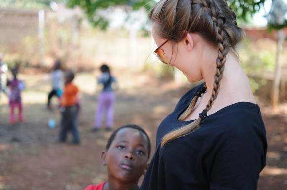 Nachmittags ging es dann wieder zum Homework-Club. Heute aber in Lobamba, also dort wo wir auch das Rope-skipping hatten. Hier waren dann wiederum andere Kinder. Wieder so zwischen neun und zwölf -alle in Schuluniform- und natürlich wieder der kleine Junior, der bei einem nach dem anderen auf dem Arm eingepennt ist. Bei mir nicht. Er sabbert mir ein bisschen viel im Schlaf. Danach mussten sich die Kinder nacheinander vorstellen und auch hier hieß es gerade stehen, Arme von der Tischkante weg und nach vorne schauen. Viele der Kinder hatten schon genaue berufliche Ziele. Vor allem Arzt und Krankenschwester war der Wunsch vieler. Auch Soldat, Pilot oder Lehrer wurden genannt. Danach gings dann wieder ans üben. Heute mti zwei Mädels spelling und puzzeln. Am Ende wieder ein paar Snacks und auch die wartenden kleineren Kinder draußen sollten nicht leer ausgehen und bekamen die übrigen Teller, über die sie sich direkt hermachten.