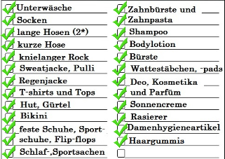 - fehlende Dinge (Kosmetikutensilien ...) besorgen